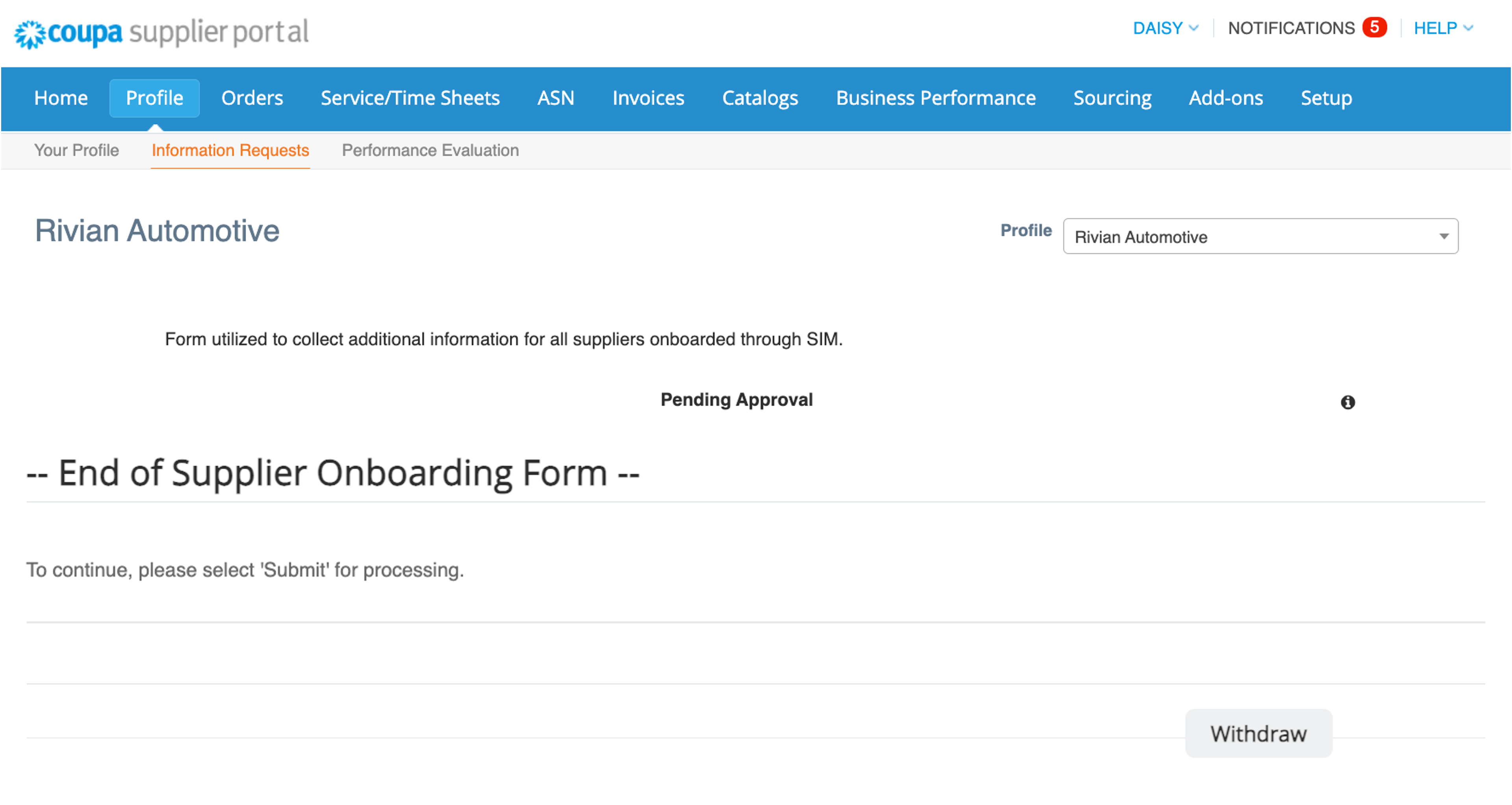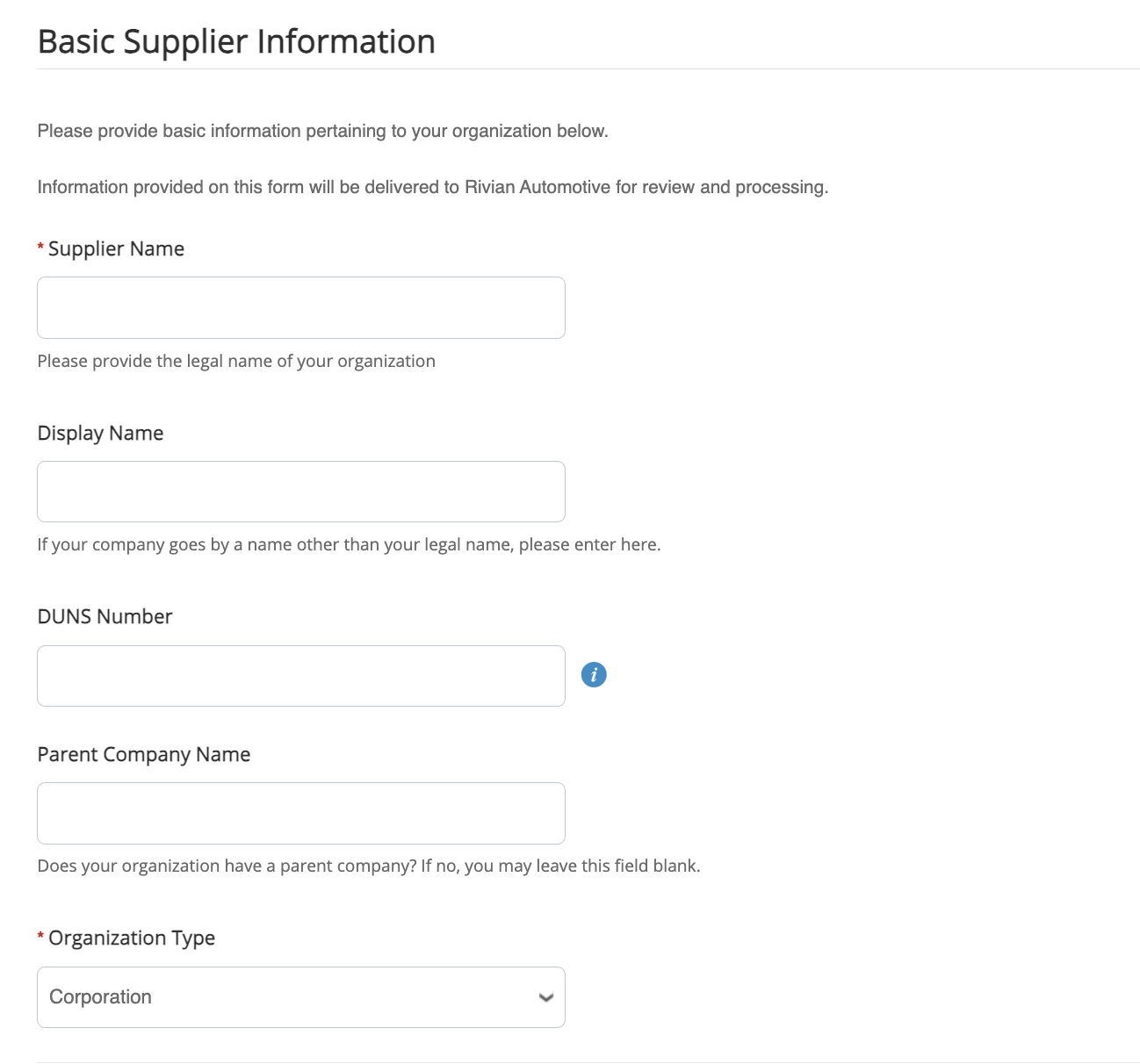 SIM is Rivian's solution for onboarding Indirect and Capex suppliers (and maintaining their information).