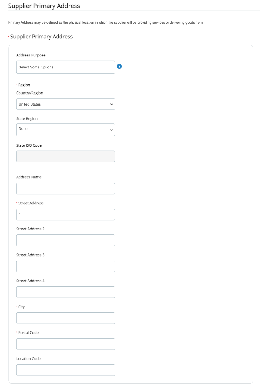 - Required fields: Region/State, Street Address, City, Postal Code.
