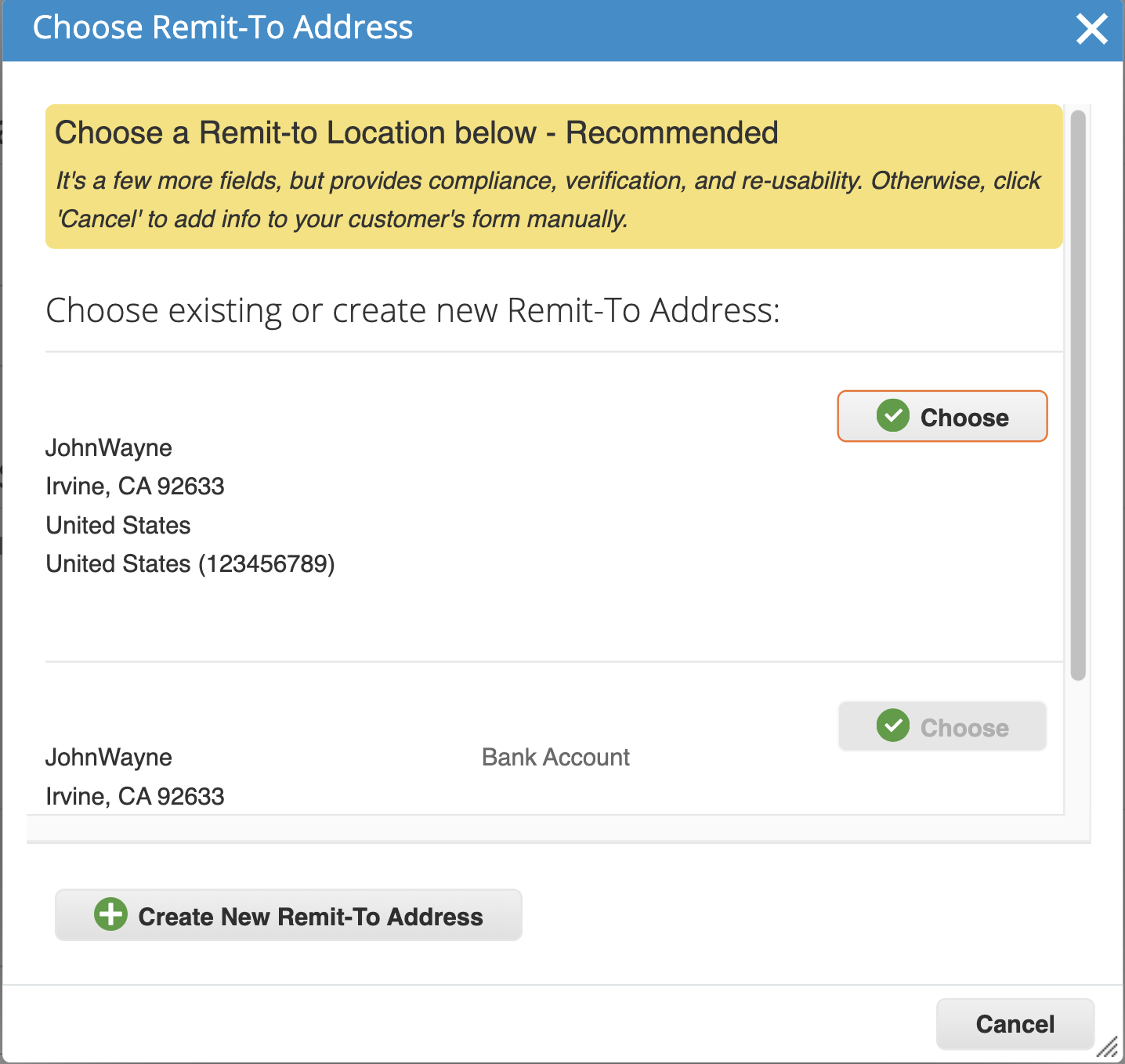 - Click on "Add Remit-To" or "Create new Remit-To Address".