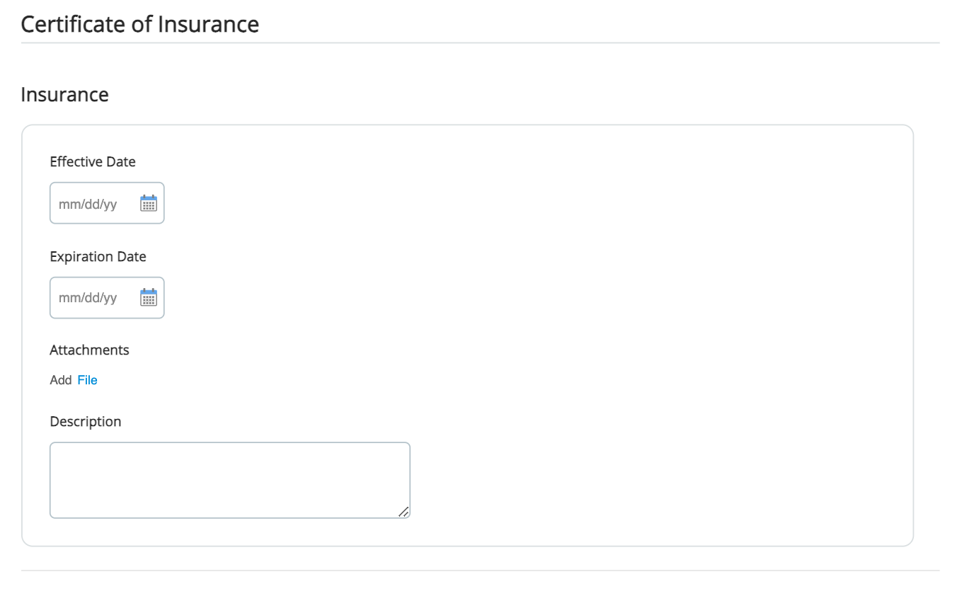 If your company has a Certificate of Insurance, please provide the details and attachments in this section.