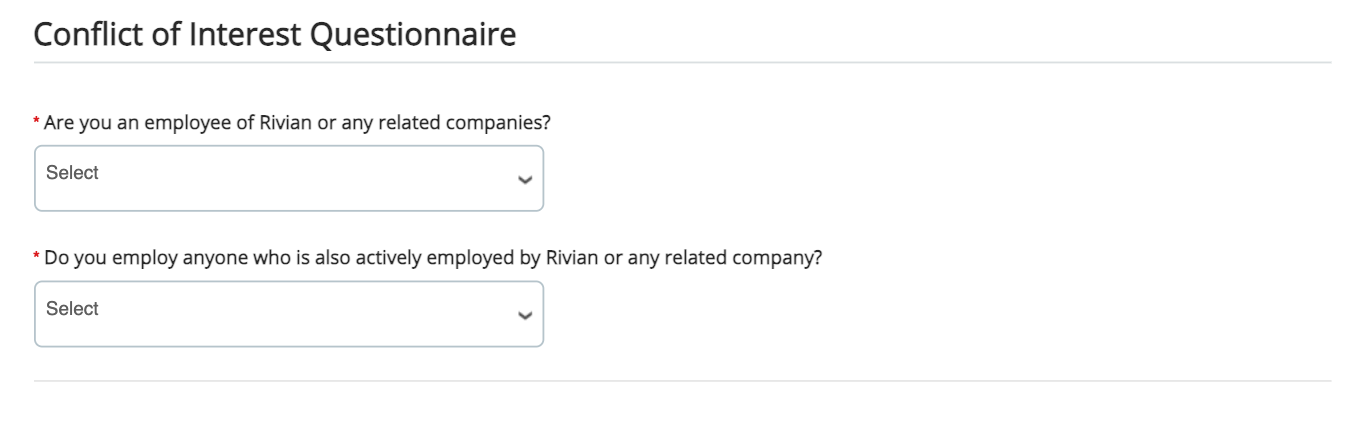 - The information your company provides in support of the due diligence process will only be used to support Rivian's risk management activities.